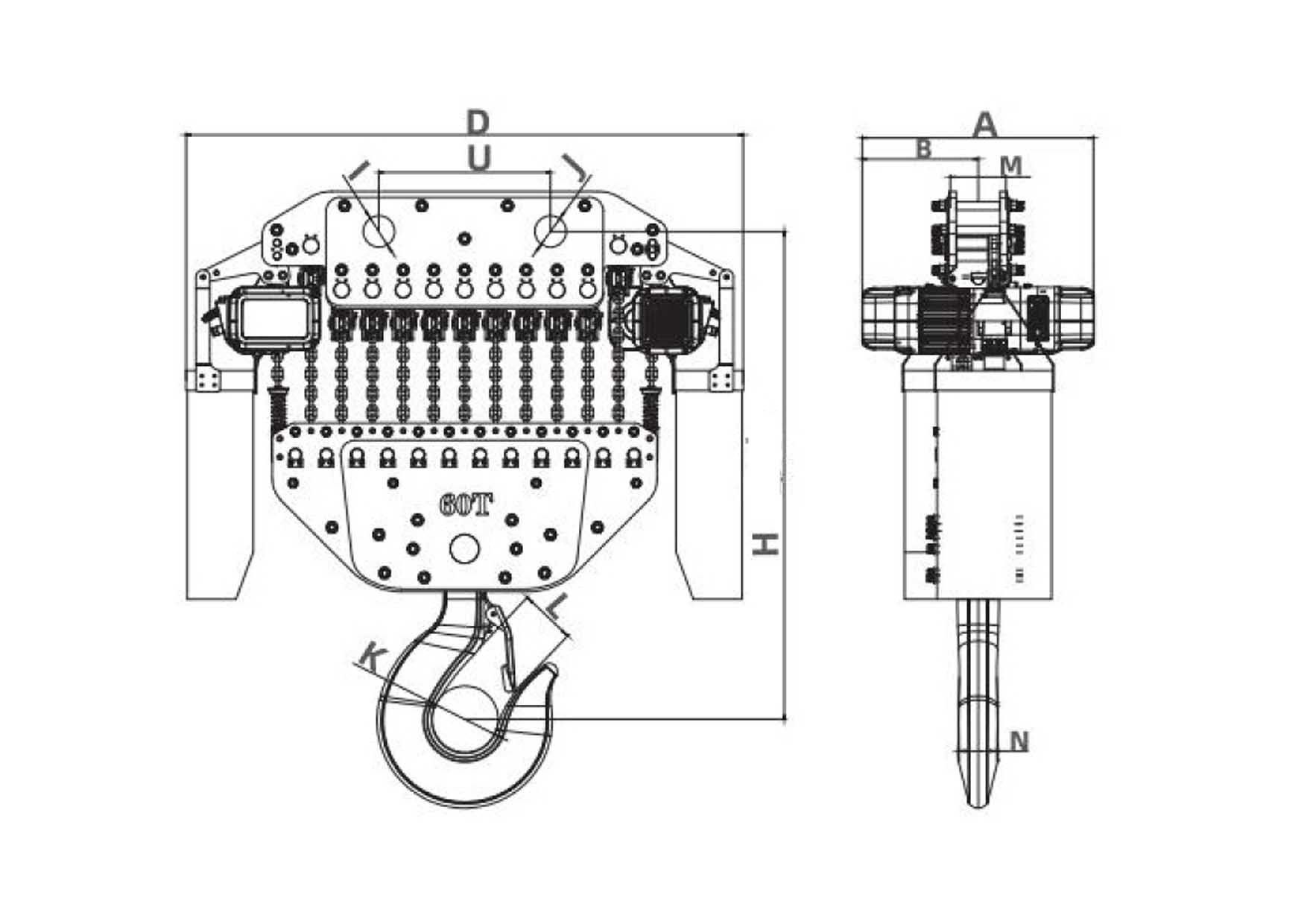 Таль электрическая цепная стационарная DCER 60-24, г/п 60,0 т
